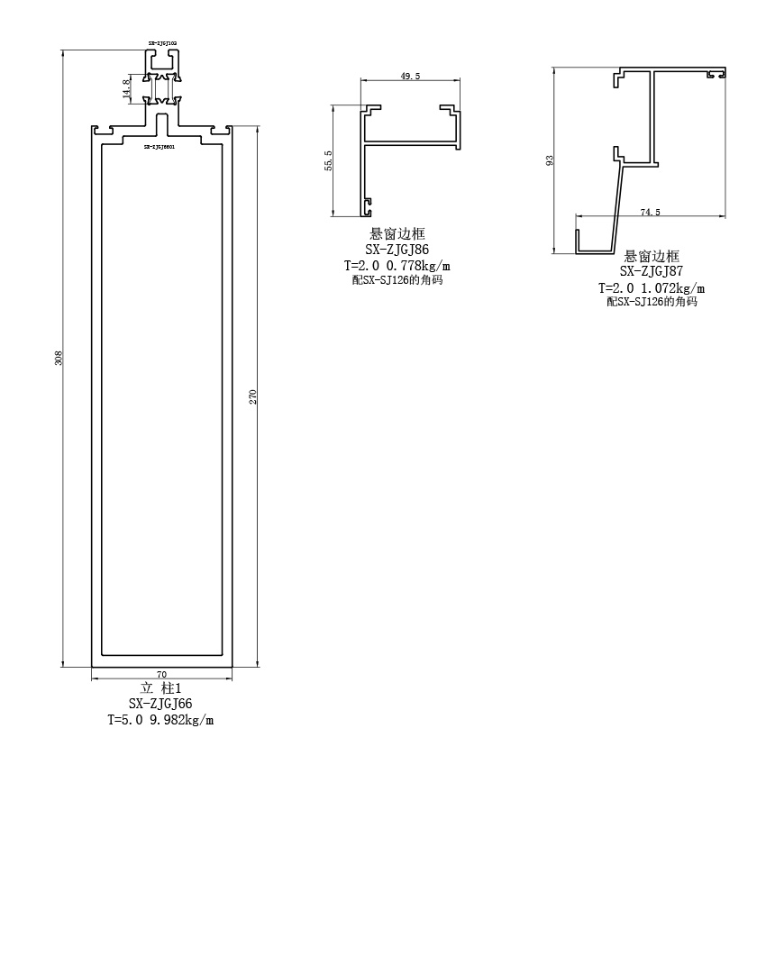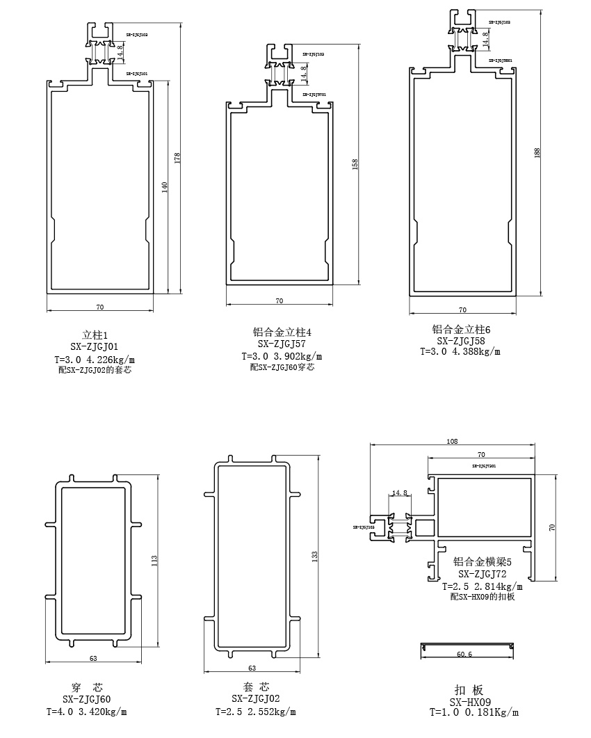 70系列断热冷桥节能幕墙立柱铝合金型材