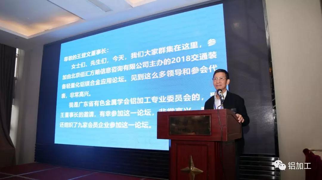 作为论坛特邀嘉宾,广东省有色金属学会铝加工专业委员会主任委员卢继延在会上致辞,卢主任表示,交通轻量化是国家产业政策支持的重点,目前交通装备轻量化发展方兴未艾。而铝加工技术转型在以铝替木、以铝替铜、以铝替钢,全面扩大铝在各交通装备领域的应用中,做了大量的装备更新、合金研究、技术开发、质量管理整体提升的工作。铝加工企业在理论突破、基础材料研究、技术创新等方面还有一段路要走,也借此机会组织多家会员企业前来学习交流,希望企业代表在跨领域的思维碰撞中获得启发,为推动铝加工企业的转型升级发挥作用。